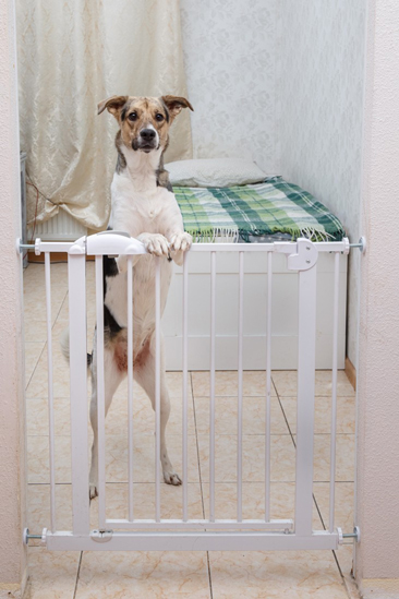 Baby gates, crates, and exercise pens allow safe exposure without physical contact.